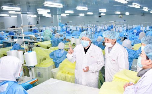 省委書記、省人大主任王東峰走進生產車間,認真查看醫用防護服生產情況,代表省委、省政府,